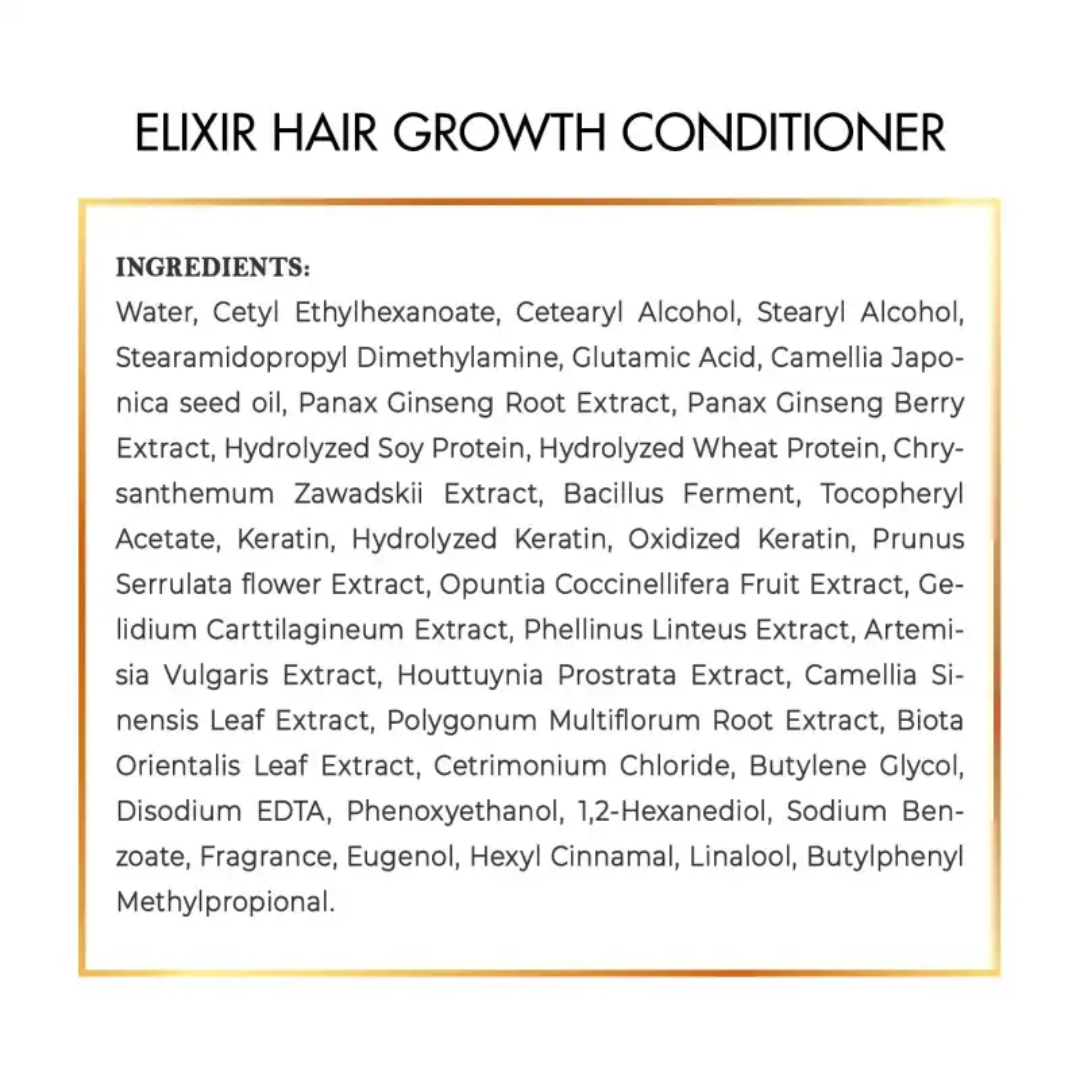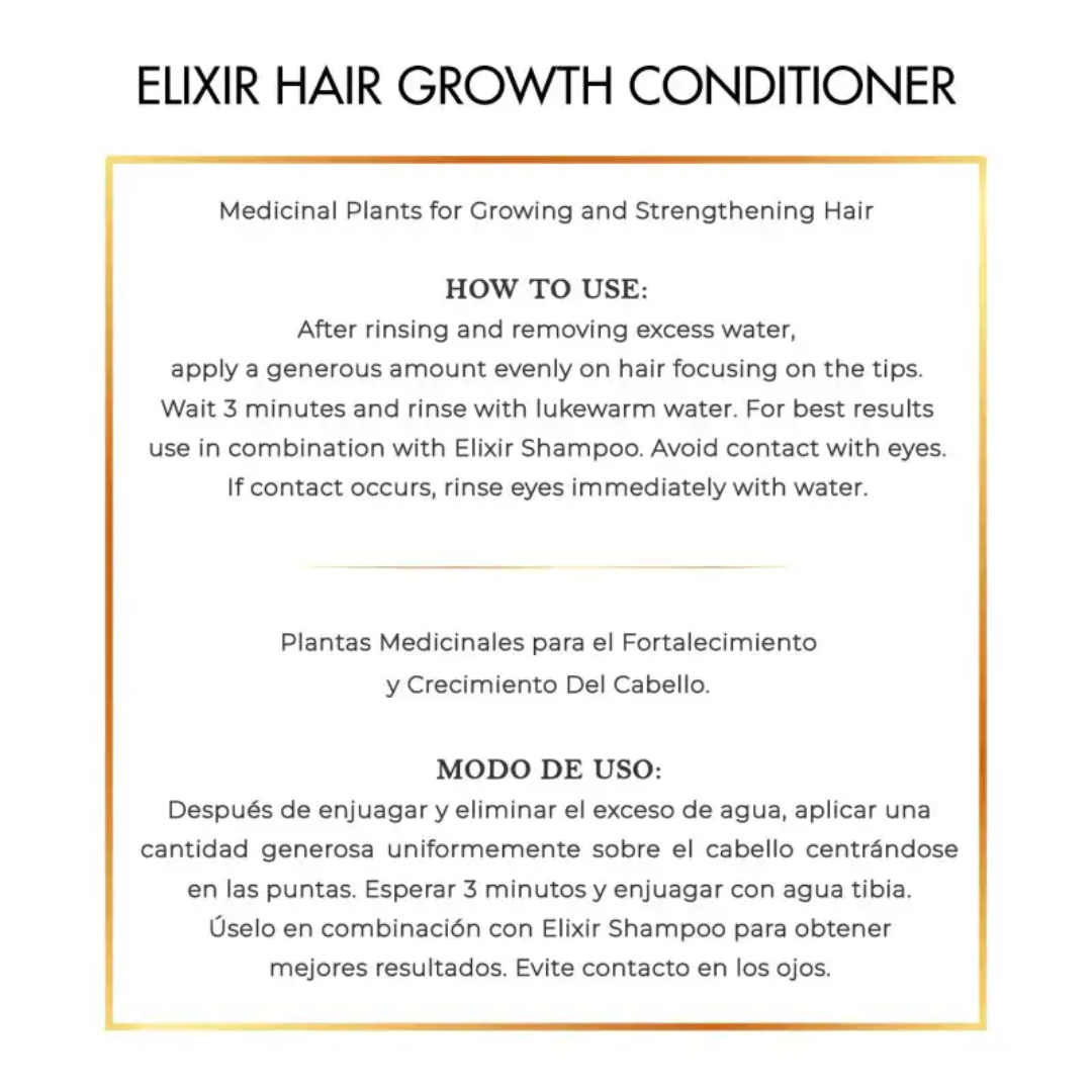 1. ** ELIXIR HAIR GROWTH ACONDICIONADOR: Promueve la restauración del cabello: Contiene antioxidantes y vitaminas que nutren los vasos sanguíneos que sostienen los folículos pilosos para prevenir la caída del cabello.