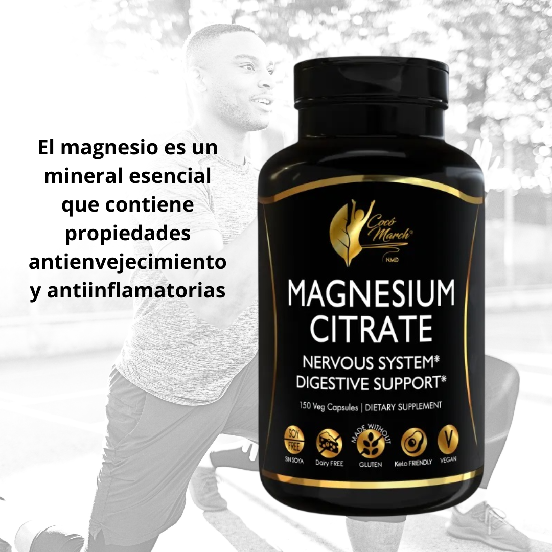 El magnesio es un mineral esencial que contiene propiedades antienvejecimiento y antiinflamatorias, fundamentales para la producción de energía y el metabolismo, la contracción muscular, la transmisión del impulso nervioso y la mineralización ósea.
